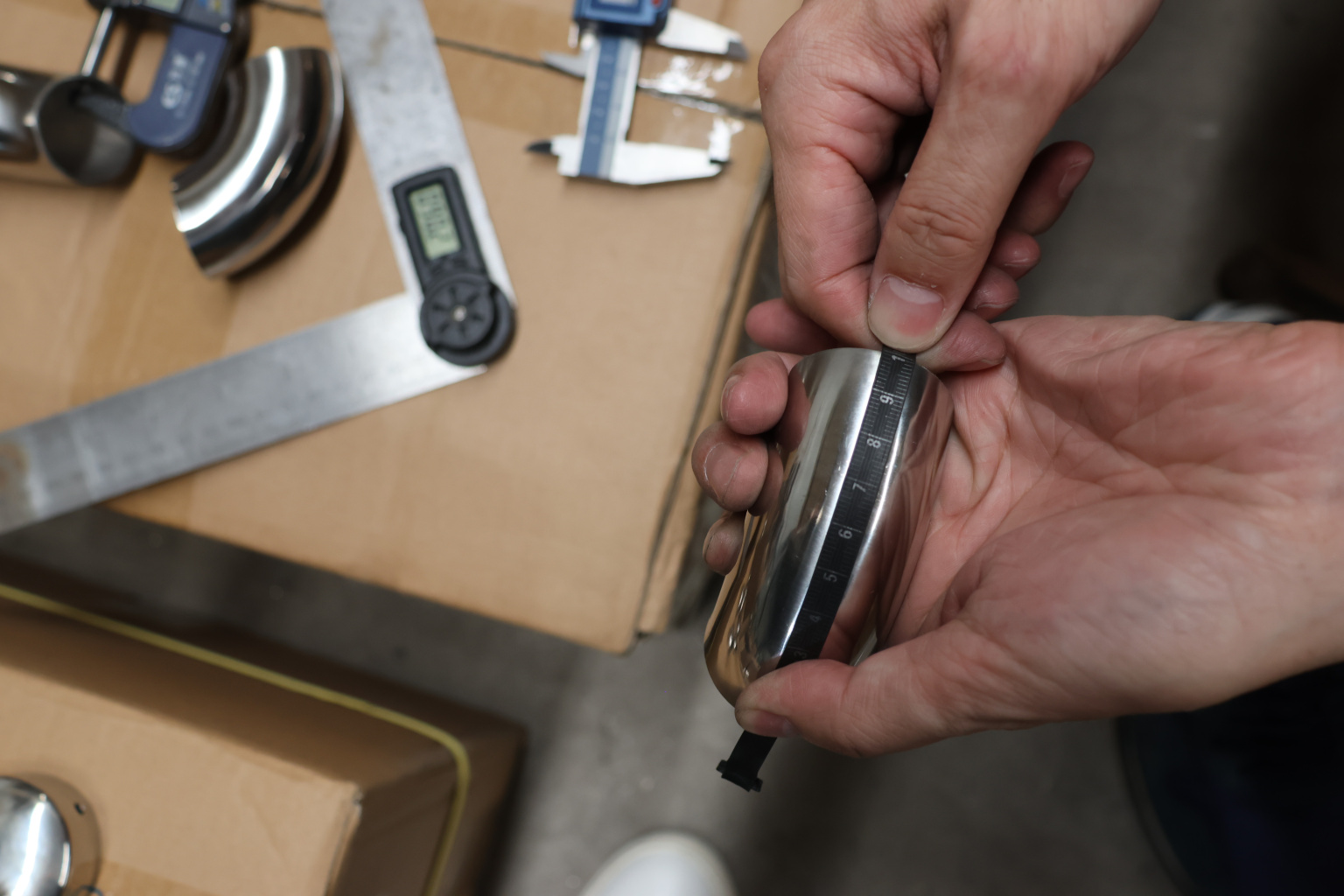 3. Затем вывести в ровную, гладкую поверхность место стыковки поручня с отводом.