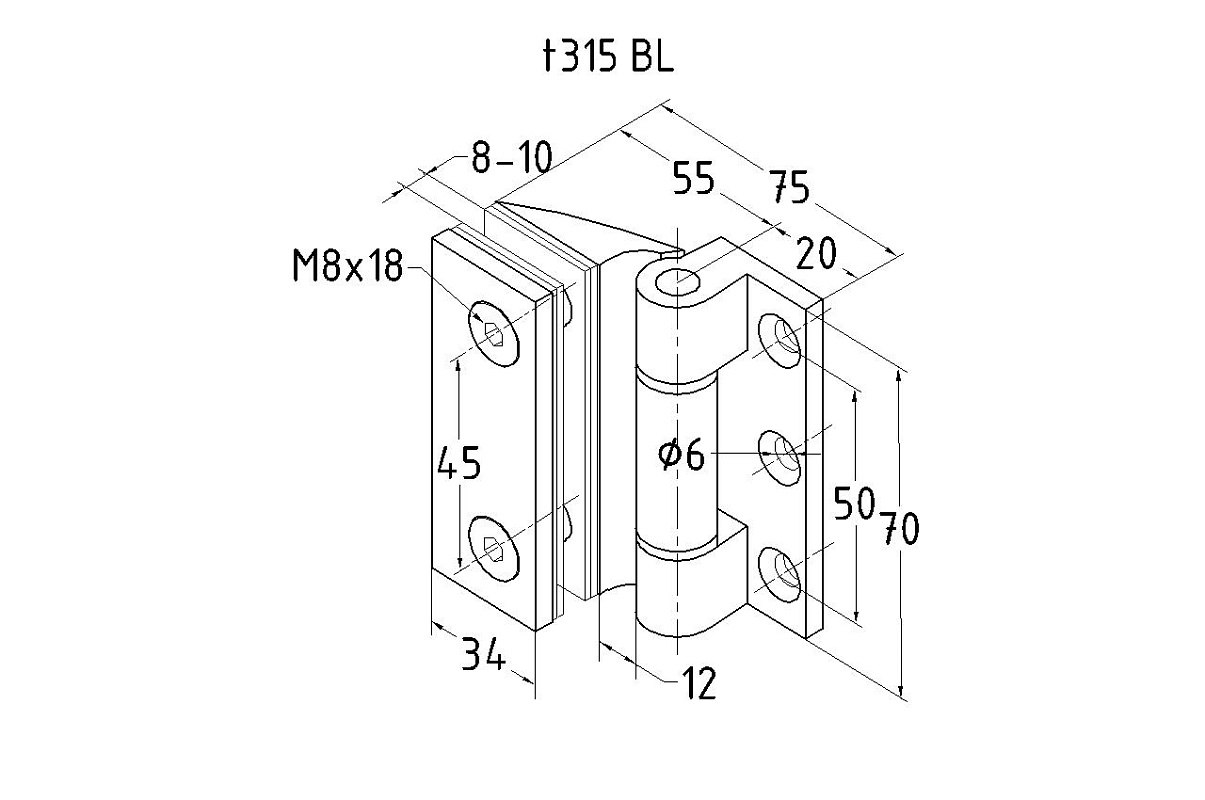 Предназначена для крепления стеклянной двери на стену душевой перегородки под углом 90º.