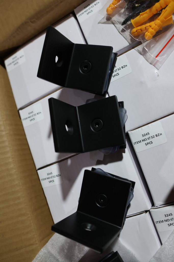 Коннектор для душевой кабины стена-стекло 90°, 45х45, цинк, черный, вырез 69 t732 BZn
