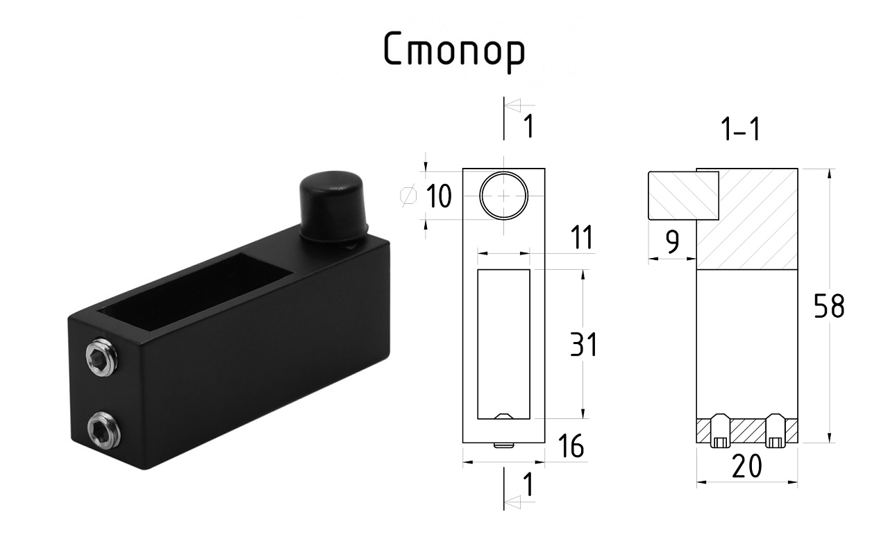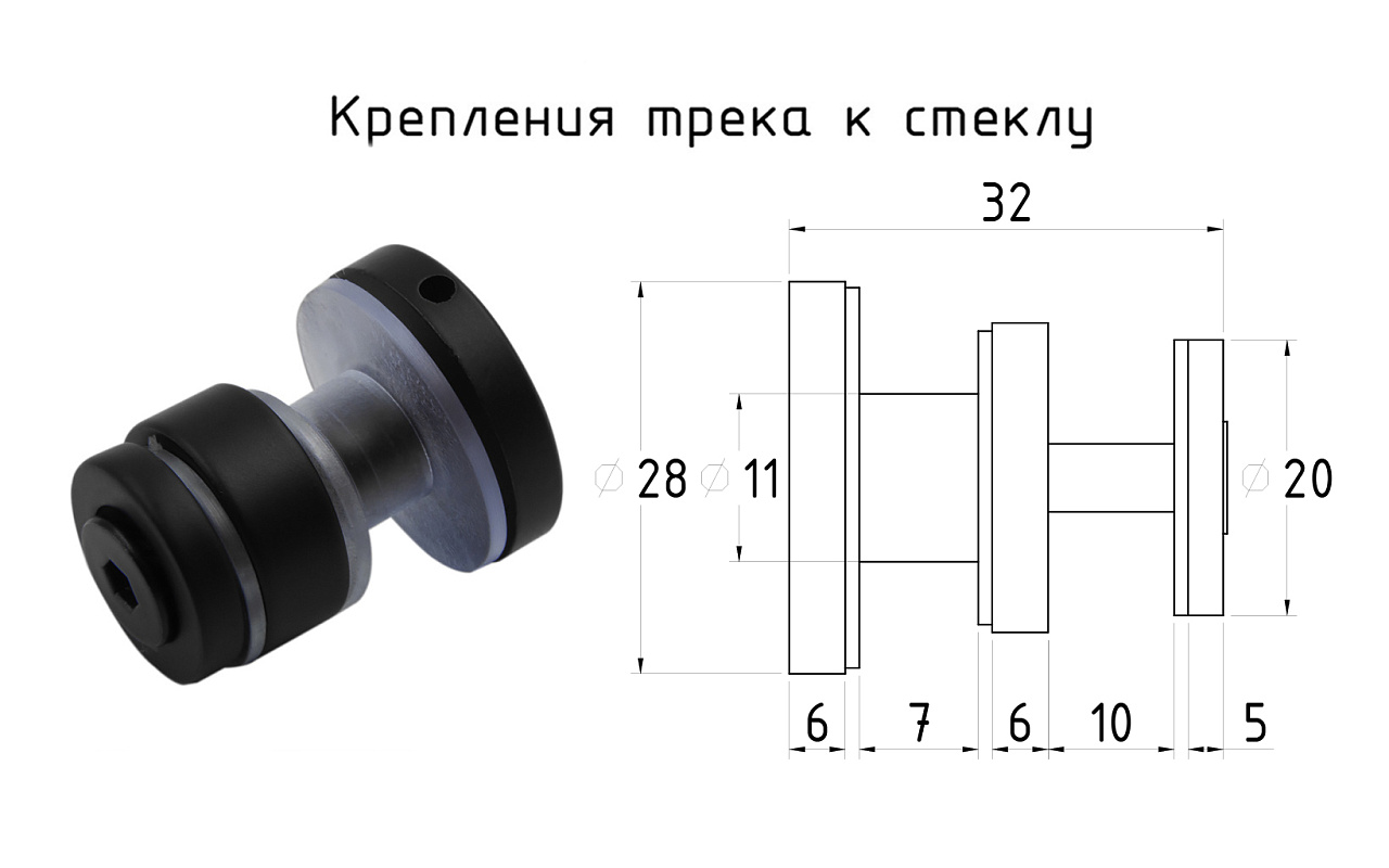 Крепление трека 30х10 к стеклу, AISI 304 черный t449 BL купить в Санкт-Петербурге