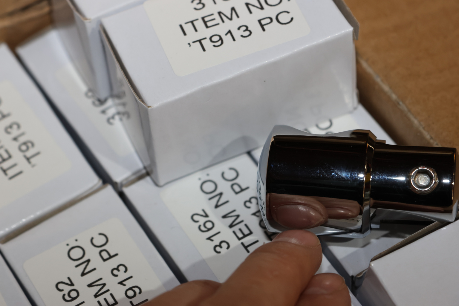 Крепежный элемент труба-стекло. Основная задача соединить окончание трека с кромкой стекла. Материал: латунь-хром, поверхность - полированная