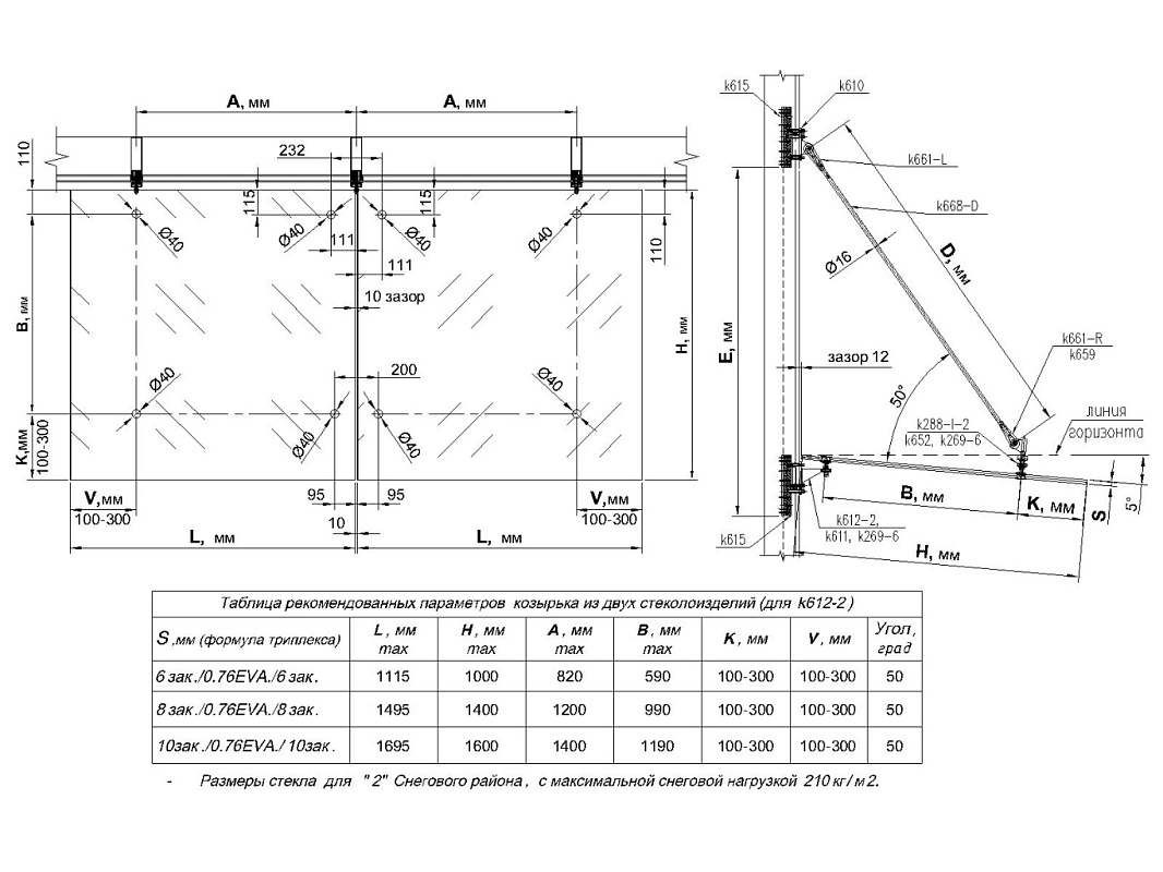 - Исключает возможность излома стекла. Конструкция фланца надёжно защищает конструкцию козырька от колебательных нагрузок.