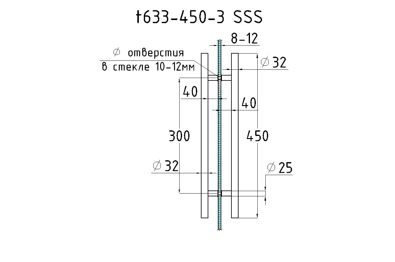 Ручка двухсторонняя для стекла 8-12 мм, 32x300x450 мм, AISI 201, шлифованная t633-450-3 SSS