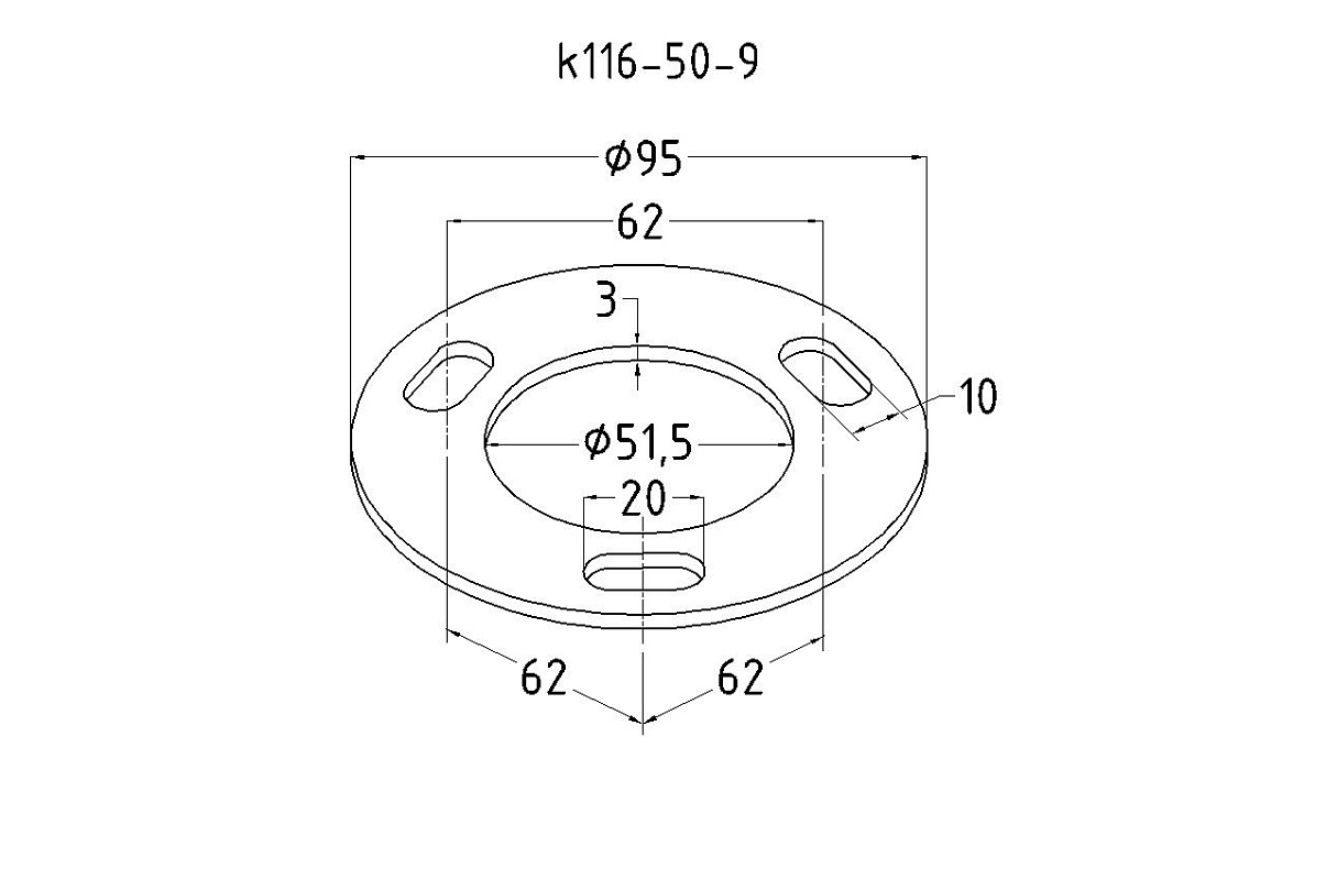Фланец стойки 50/90х3 мм, 3 отв. М10х20, черный металл k116-50-9