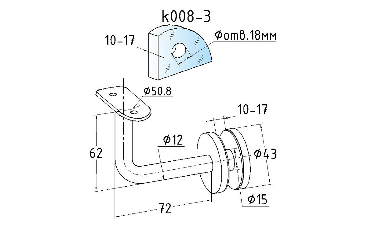 Держатель поручня на стекло 10-17 мм, полированный (AISI 304) k008