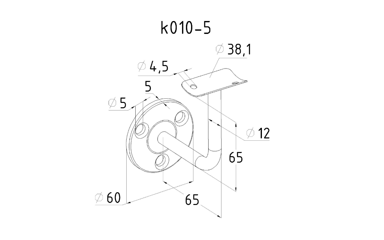 Это один из самых дешевых пристенный держатель для трубы Ø38.1 мм на всем рынке (под поручень Ø50.8 мм вам подойдет k234). Применяется не только внутри помещения, но и на уличных ограждениях. В нашем ассортименте есть аналог данного фитинга из 201 марки стали и с крышкой - k010-4.