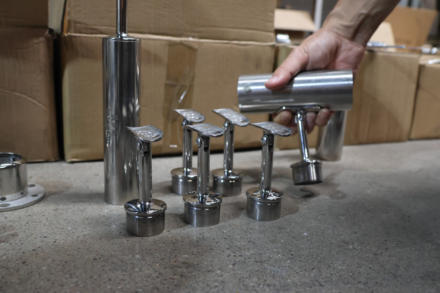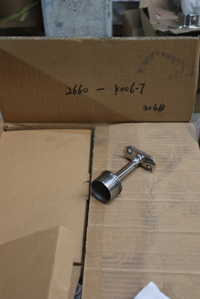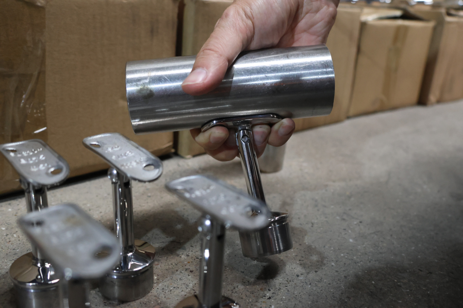Наконечник палец на стойку из профильной трубы 40х40 мм, с регулируемым ложементом под поручень Ø50.8 мм, полированный, литой, облегченный нержавеющий AISI 304 k239-3