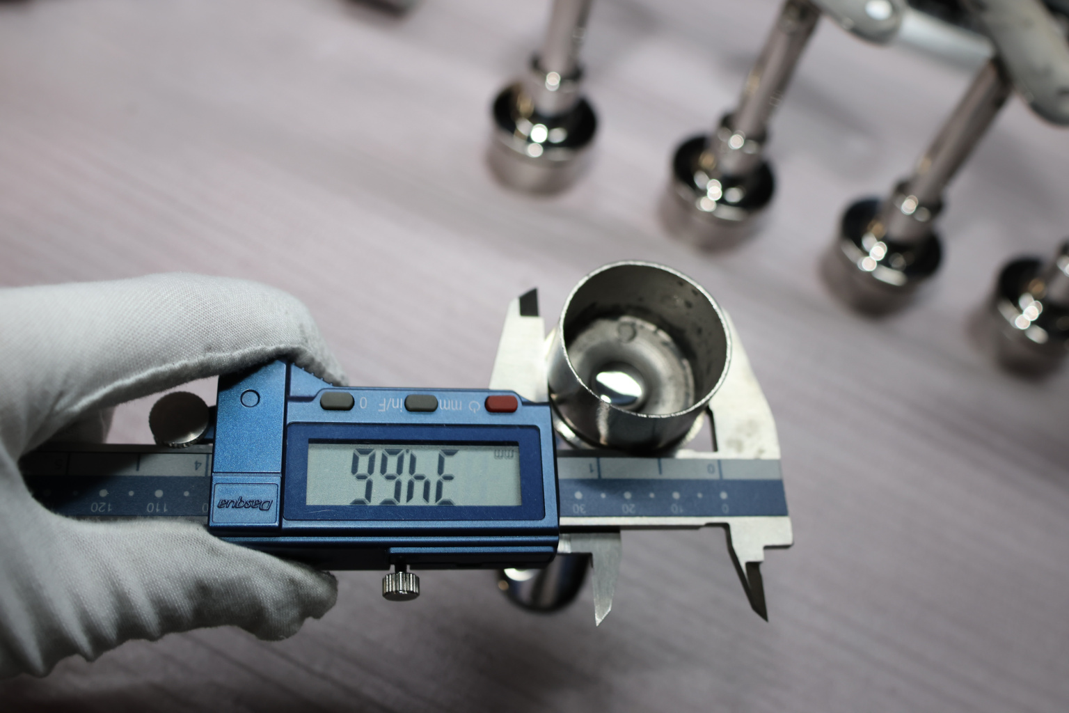 Наконечник регулируемый по высоте на стойку Ø38.1х1.5 мм, с регулируемым ложементом под поручень Ø50.8, литой, полированный, нержавеющий (AISI 304) k317