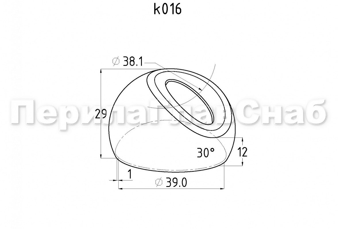 Наконечник штампованный (СПС) косой 30° на трубу Ø38,1 мм, для поручня Ø38.1мм, полированный, нержавеющий, AISI 304, k016