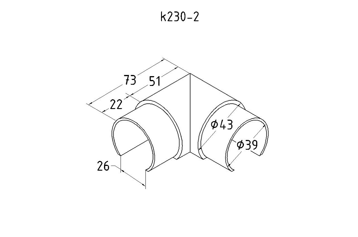 Отвод поручня 90°, с вставками для трубы Ø42.4 мм, полир., (AISI 304) k230-2