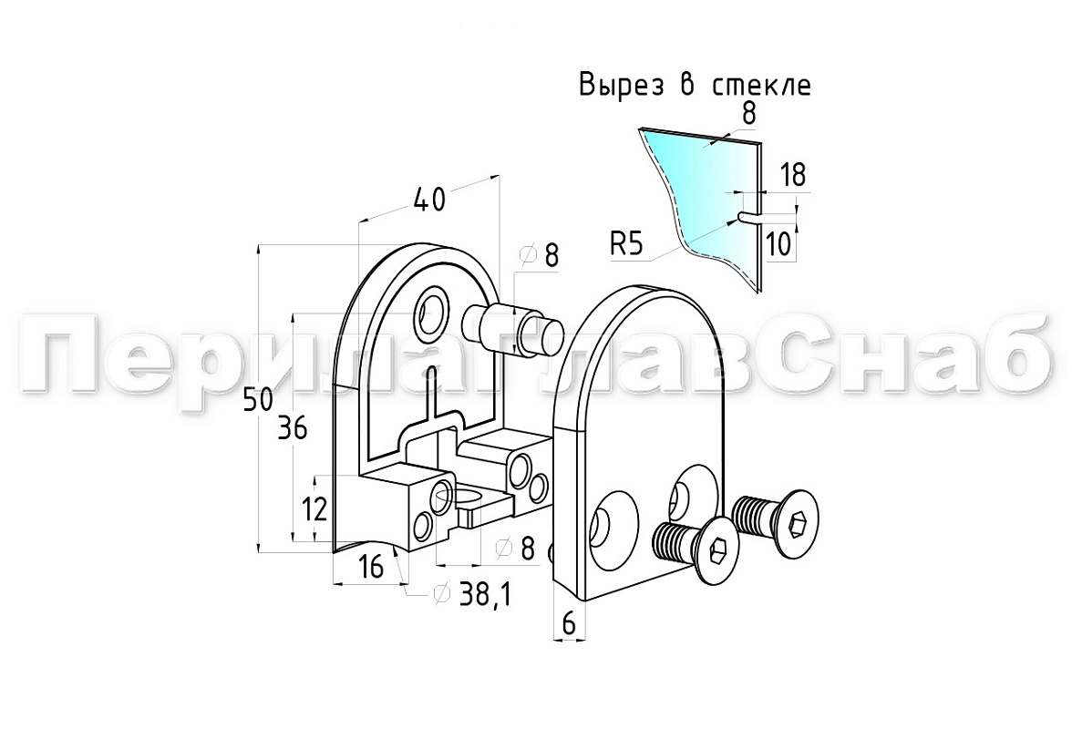Устанавливается на стойку Ø38.1 мм самосборного или сварного ограждения. Стеклодержатель подготовлен для зажима стекла толщиной  8-10 мм и для триплекса 4+4 мм. В комплект входят дополнительные вставки под стекло 8 мм, 4+4 мм. Если у вас стекло толщиной 10 мм, то дополнительные вставки не используют. Межосевое расстояние между винтами 24мм. Также в комплект входит стеклоуловитель  для стекла, данный стеклоуловитель, при монтаже можно не использовать. По умолчанию, литой стеклодержатель рассчитан на нагрузку до 40 кг, стекло со временем не поползет. Если вам необходимо увеличить нагрузку на стеклодержатель  до 50 кг, то в таком случае, используют стеклоуловитель и в стекле согласно чертежу, делают отверстие.  Данный стеклодержатель используют под трубу Ø38.1 мм k854, но, если вы хотите использовать его под трубу Ø50.8 мм k855, то под заказ на нашем производстве его изготовят, цену и сроки уточняйте у менеджера.