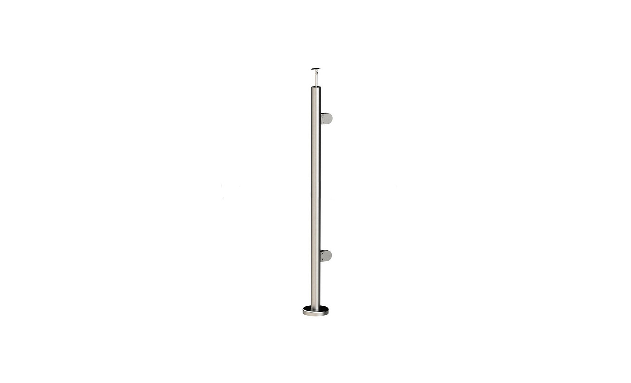 Стойка круглая Ø38.1: 2 литых зажимных стеклодержателя, полированная, высота 950 мм (AISI 304) k722-R