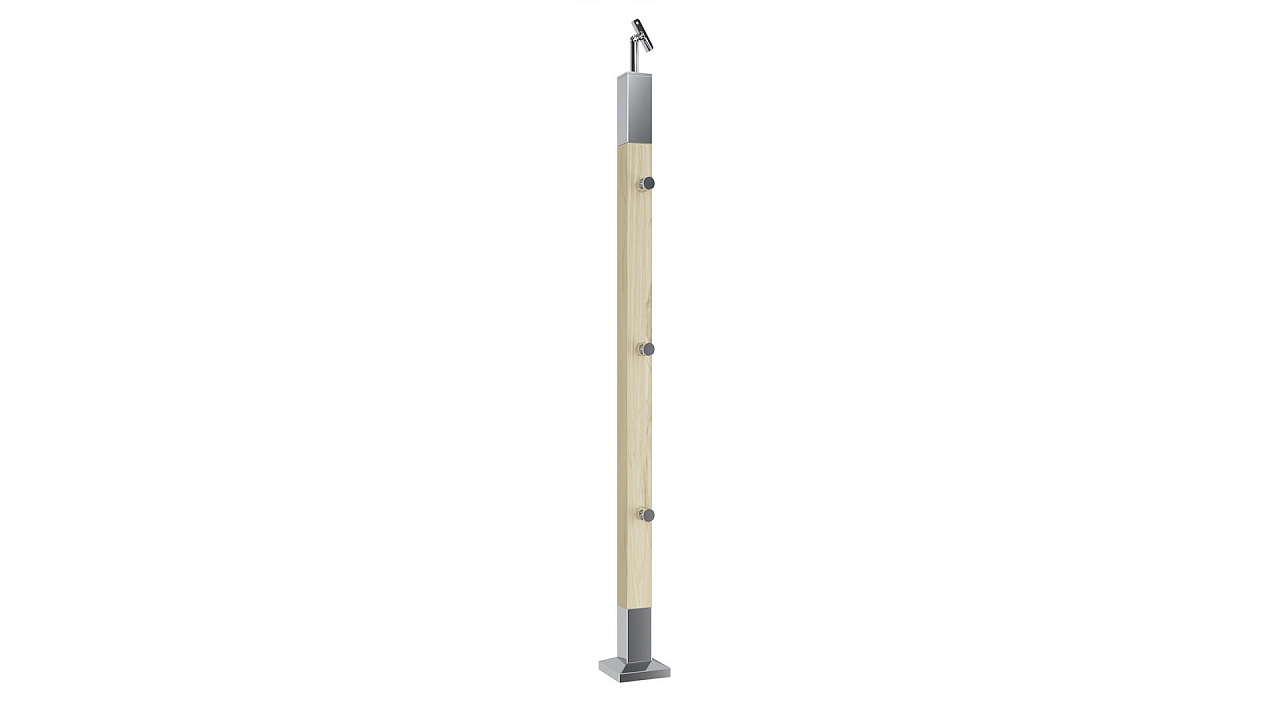 Готовая стойка 40х40х950 мм, деревянная, со вставками из нержавеющей стали 2х100 мм с 3 ригеледержателями k740-1