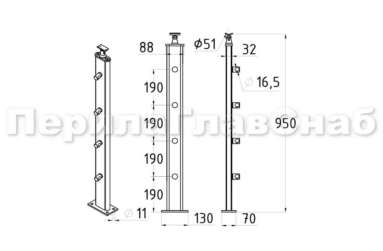 Готовые стойки – это экономия Вашего времени и денег. Приобретая готовую стойку Вы можете собрать ограждение сами, не привлекая монтажную бригаду и экономя денежные средства на монтаже. Стойка легко монтируется к полу благодаря четыреханкерному шлифованному фланцу с отверстиями под анкер-болт М10 ( ) или шпильку ( 4, м-3963) в комплекте с хим анкером или . Поручень из нержавеющей стали можно закрепить при помощи самореза (, , ), либо при помощи заклепки () и винта М6 (М-3973) что на порядок эффективней. Для крепления при помощи заклепок необходимо растачивать отверстие в ложементе. Если вы используете деревянный поручень, то его можно закрепить при помощи саморезов ( , , ). Для покраски деревянной проставки необходимо открутить верхние винты шестигранником (k931, k932) и вынуть проставку, а после покраски вставить её на место и закрутить винты. Ограждение готово!