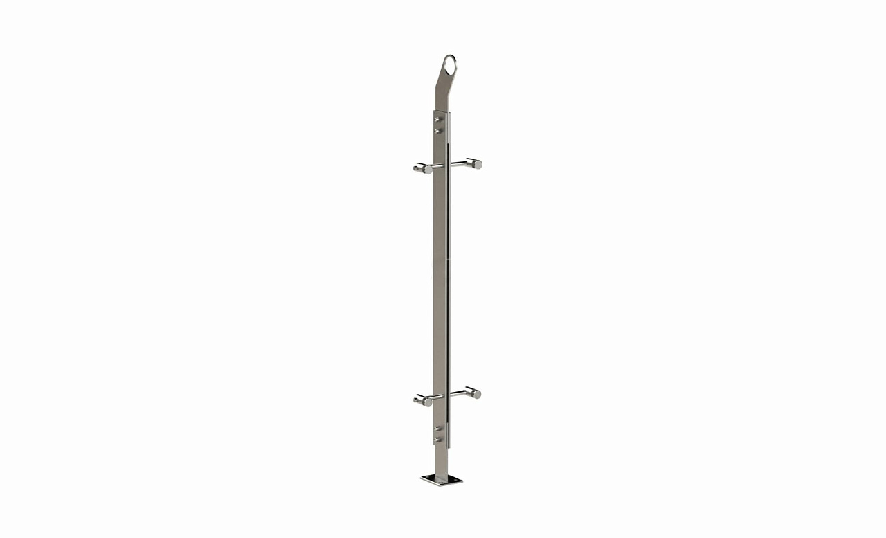 Стойка эксклюзивная из двух пластин с двумя спайдерными стеклодержателями, крепление в пол, нерегулируемый ложемент с обхватом (AISI 304) k768