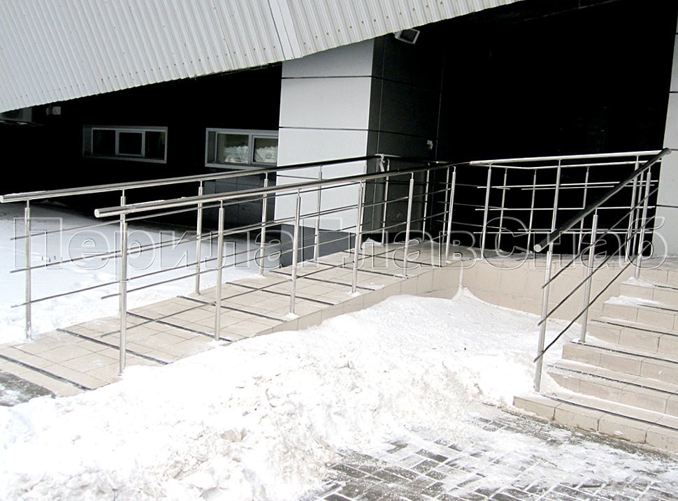 В супермаркете «ОЛИВЬЕ» торгово-развлекательного центра СНЕЖ.КОМ были установлены ограждения из нержавеющей стали на входе в магазин, а также пандус для инвалидов вместе с ограждением.
