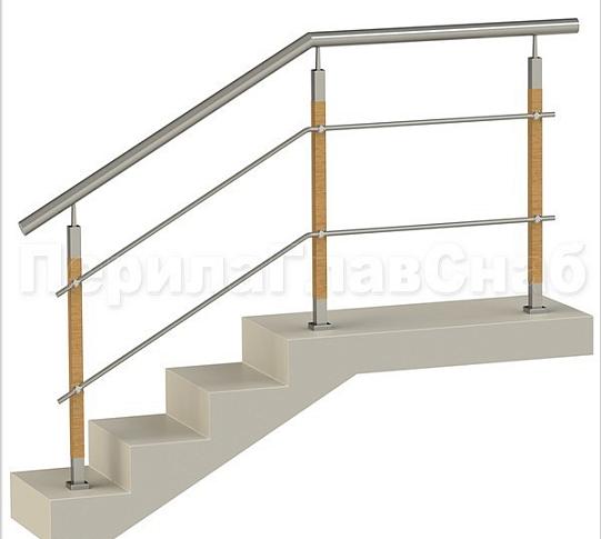 Записаться на встречу Два ригеля на держателях, круглый поручень и квадратные деревянные стойки