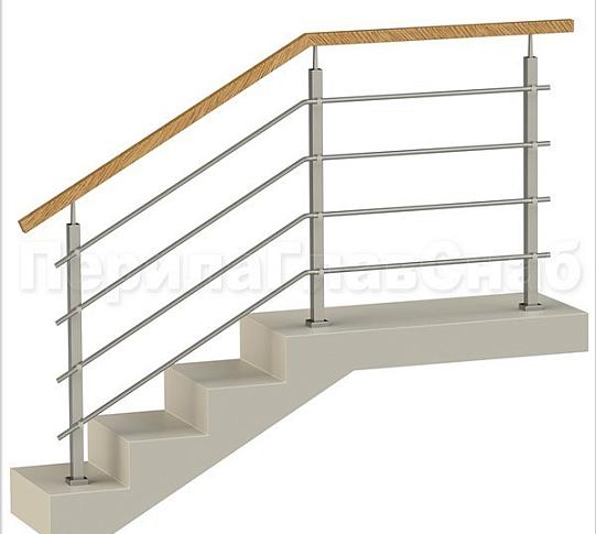 - Четыре ригеля на держателях, квадратный деревянный поручень и квадратные стойки
