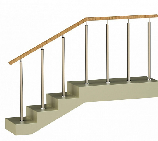 - Ограждения со стойками в каждую ступень с квадратным деревянным поручнем без ригелей
