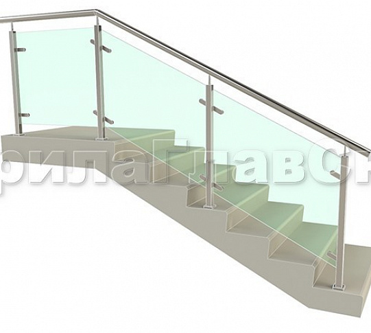 Ограждение лестницы с квадратными стойками и пластинчатыми стеклодержателями