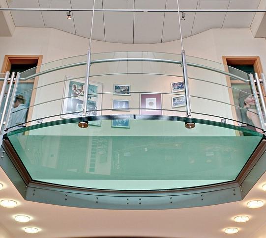 Стеклянное перекрытие из матового стекла на внутреннем балконе